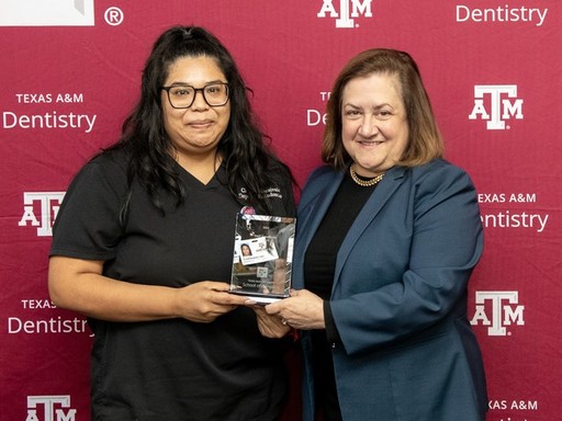 The 2024 Texas A&M University College of Dentistry's recent staff awards ceremony honored employees who not only work hard, but who are also dedicated to the school’s mission. Those winning awards included Jo Spears and Mary Jo Rodriguez in the Department of Comprehensive Dentistry, Staff Team Award; Carmina Castro and Claudia Monsivais, Staff Excellence Award; and Michael Derdeyn, New Employee Award. Continue reading to learn more about each award winner and the characteristics that make them stand out in the workplace.